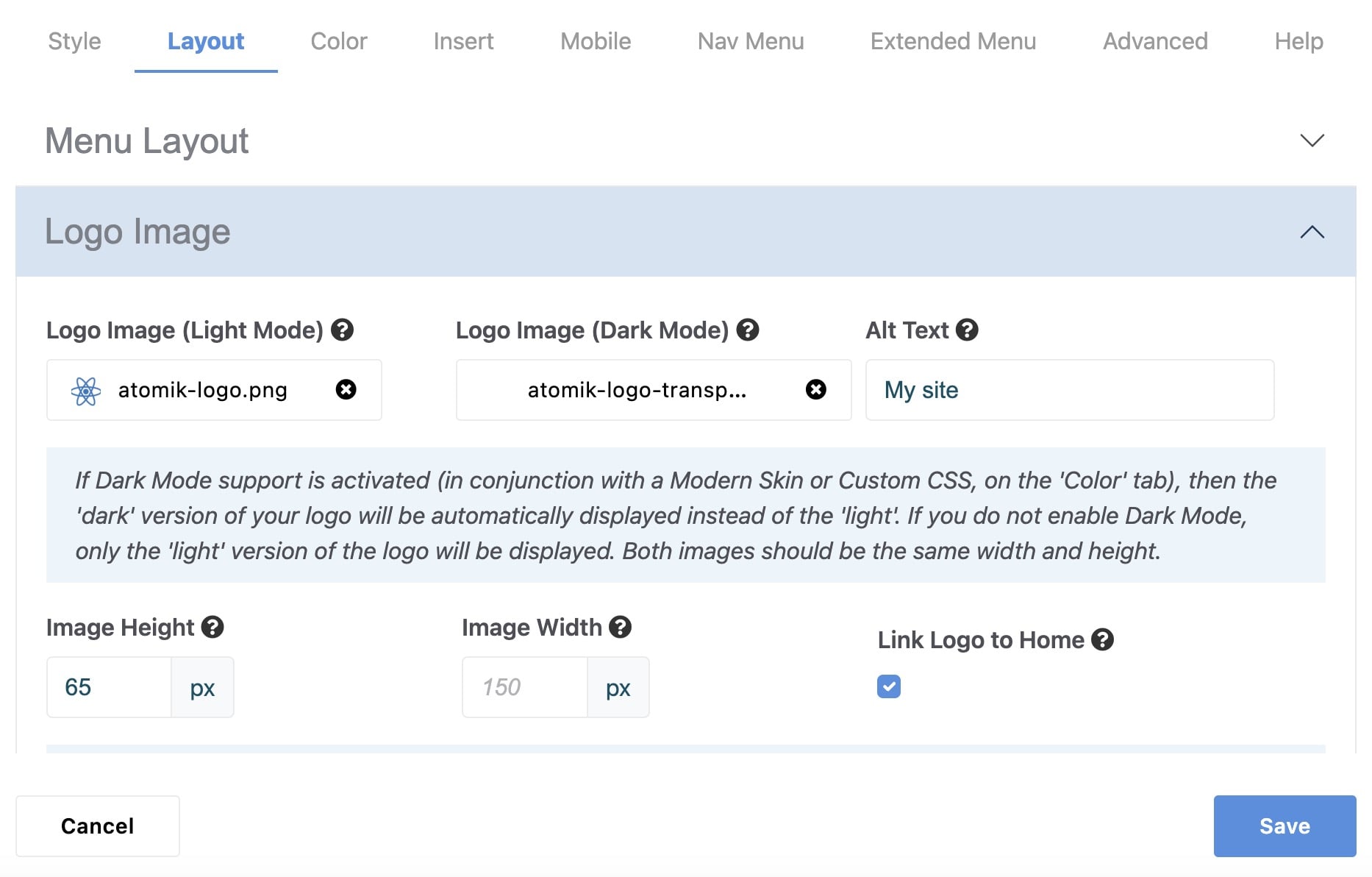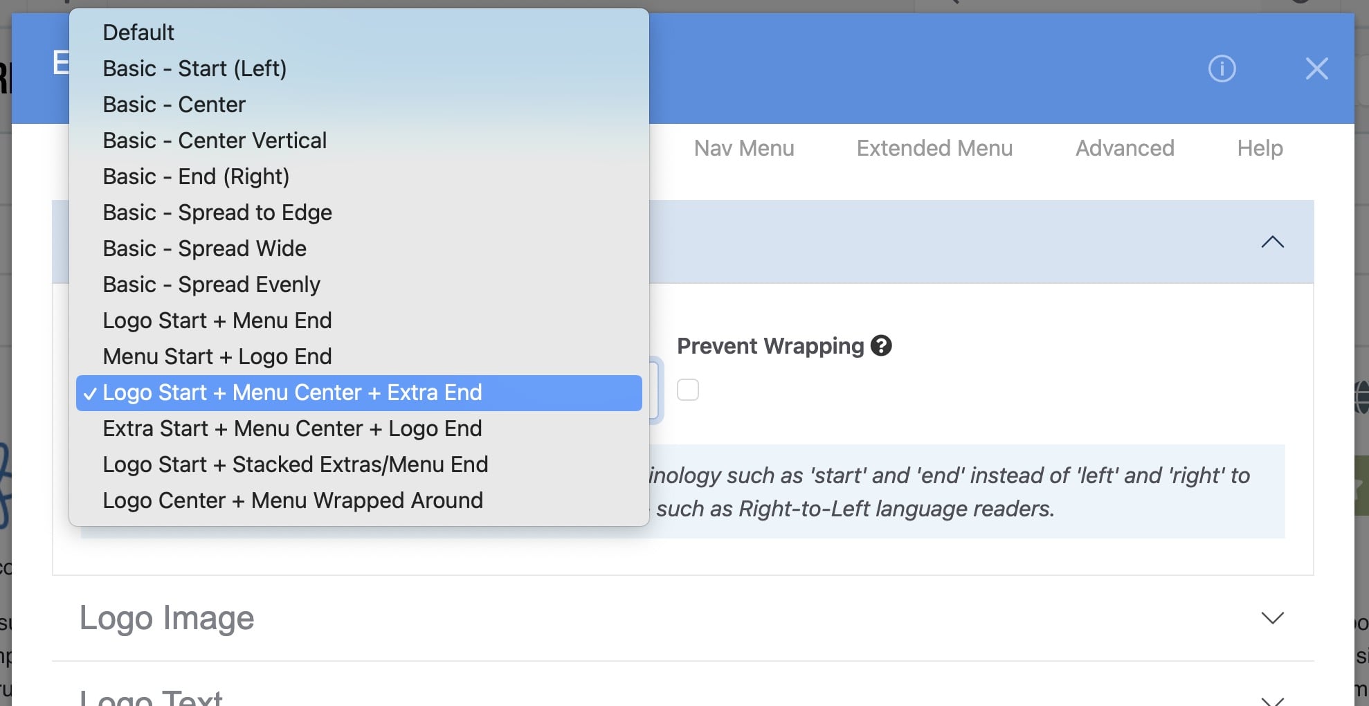 - The Mega Menu will use the full width offered by the editable area in your active theme. If your menu is too wide, open the editor interface and navigate to the Advanced tab, and under Layout enable Restrict Overall Menu Width. This section also offers controls for the gap around the outside of the Mega Menu.
