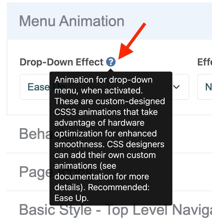 - Every field in the editor interface includes a question mark circle icon. Hover your mouse over it to display a short description and recommended default value.