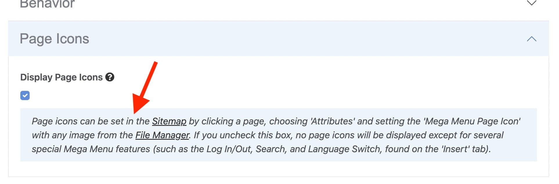 - To hide specific pages from your menu, set the Exclude from Nav Page Attribute in the Dashboard > Sitemap. Set the Hide Children from Mega Menu attribute to hide child pages. See full documentation.