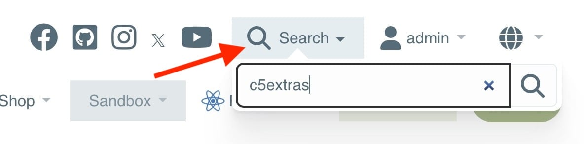 The c5extras.com main navigation at the top of the page uses the Mega Menu package (with a customized skin).