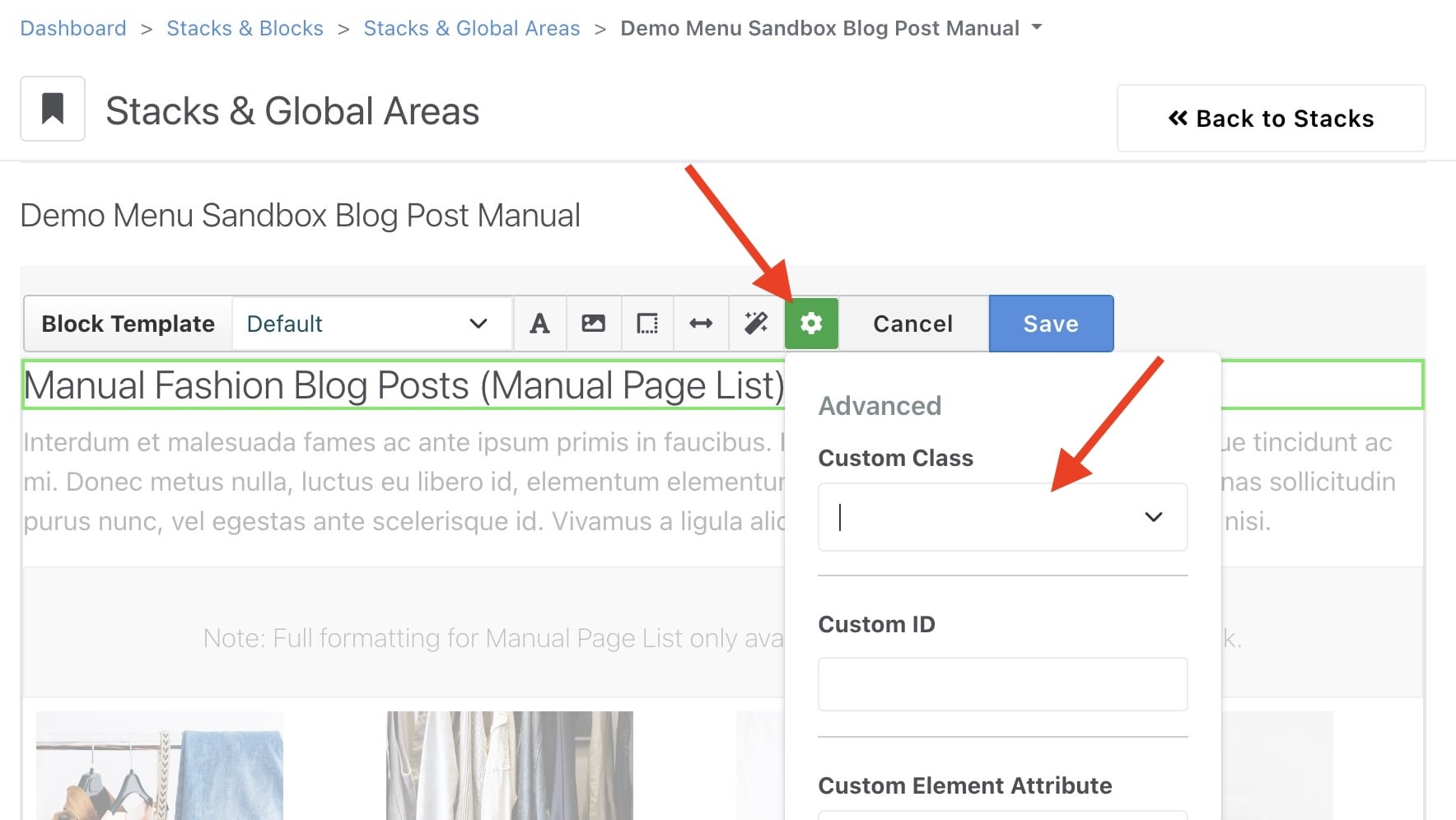 Every dynamic page link generated from the Sitemap is assigned a unique class based on the Page ID. You can view the Page ID from Dashboard > Sitemap > Attributes. This allows precise formatting for specific pages and content in the Mega Menu.